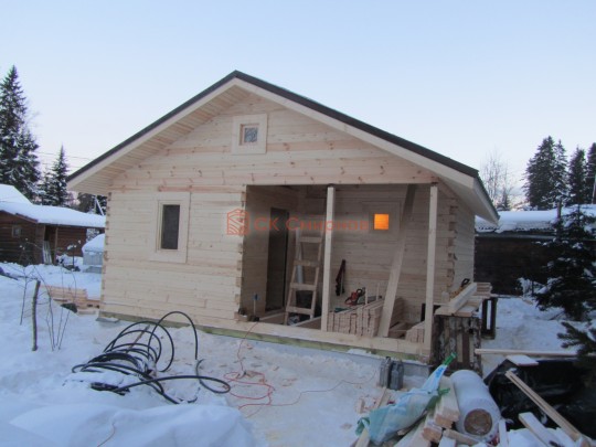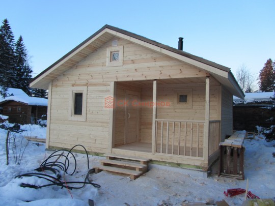 Такая одноэтажная баня 6х6 может быть построена из бруса. Ориентировочный срок строительства 21 дней.