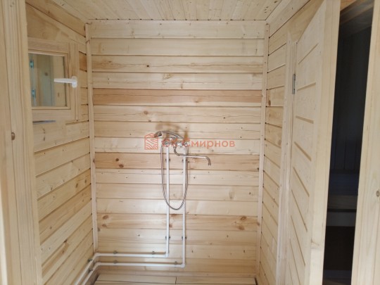 Баня состоит из одного этажа и включает три помещения: комнату отдыха размером 4х2 м, моечную и парное помещение одинаковых размеров 2х2 метра. Модель на видео построена из сухого кедрового профилированного бруса 90х140 и полностью оборудована под ключ. Строительство велось нами от фундамента до отделки, включая установку душевого и печного оборудования.