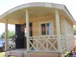 На террасе при условии что она есть делаем перила из строганной доски со всех сторон, столбы террасные также строганные, а не обрезки профилированного бруса с шипом и пазом. Домкратики на столбах для дальнейшей регулировки. Балясины будут сделаны аккуратно. Обратите внимание что в дешёвых случаях это может быть и будет просто вагонка прибирая к неотесанной доске снаружи и столбы будут не квадратные а просто профилированный брус как на видео.