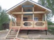 На террасе при условии что она есть делаем перила из строганной доски со всех сторон, столбы террасные также строганные, а не обрезки профилированного бруса с шипом и пазом. Домкратики на столбах для дальнейшей регулировки. Балясины будут сделаны аккуратно. Обратите внимание что в дешёвых случаях это может быть и будет просто вагонка прибирая к неотесанной доске снаружи и столбы будут не квадратные а просто профилированный брус как на видео.