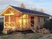 • Отделочные работы. На этом этапе устанавливаются окна, двери, электропроводка, освещение, плинтуса, откосы, печное и душевое оборудование, производится покраска стена снаружи — всё, что предусмотрено договором. В зависимости от объёма работ на отделку может уйти от 3 до 10 дней.