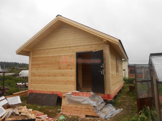 В июне 2020 завершили строительство одноэтажной бани 5х7 с классической двускатной крышей из сухого бруса камерной сушки 140х140 мм. Из такого бруса можно сразу строить с отделкой под ключ, что мы и сделали. Все работы от установки свайно-винтового фундамента до финишкой отделки были выполнены за 15 дней.
