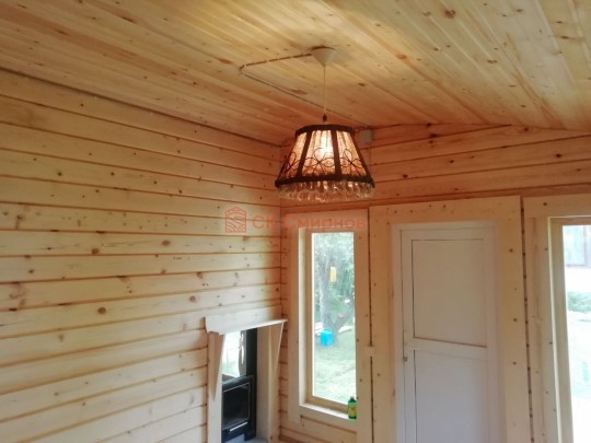 Потолки, стены вансардного каркасного этажа ( если он есть ) обшиваются сухой вагонкой.