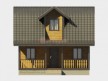 На фото представлен проект загородного дома №253 габаритами 7х8 метров и отличной планировкой общей площадью 87 квадратных метров. Это небольшой каркасный коттедж с мансардой, который может использоваться и как дачный, и как зимний для постоянного проживания.